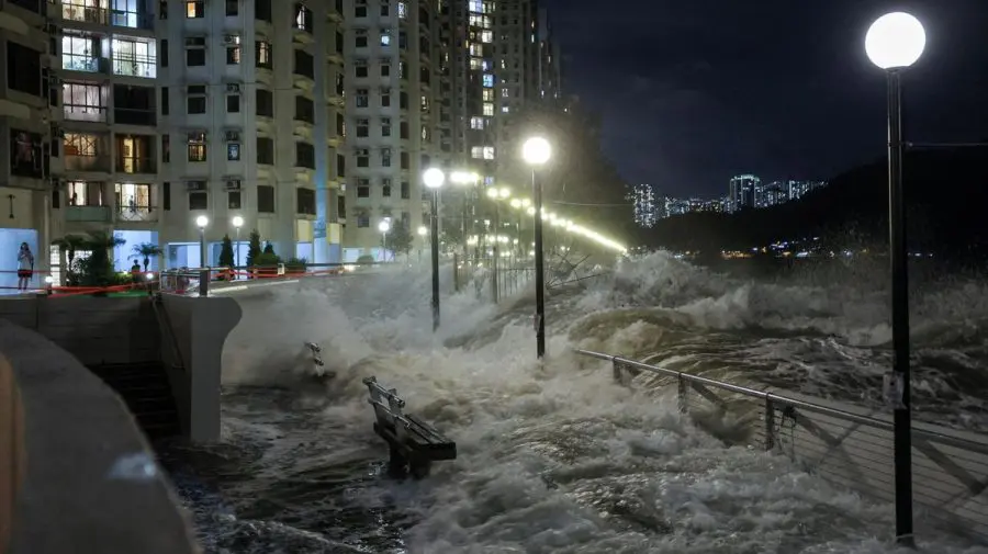 Valuri de aproape cinci metri au lovit zona rezidențială Heng Fa Chuen, iar autoritățile au avertizat că nivelul apei ar putea crește cu 4–5 metri peste normal. În Shenzhen, 400 000 de oameni au fost evacuați, iar locuitorilor li s-a cerut să rămână în case.