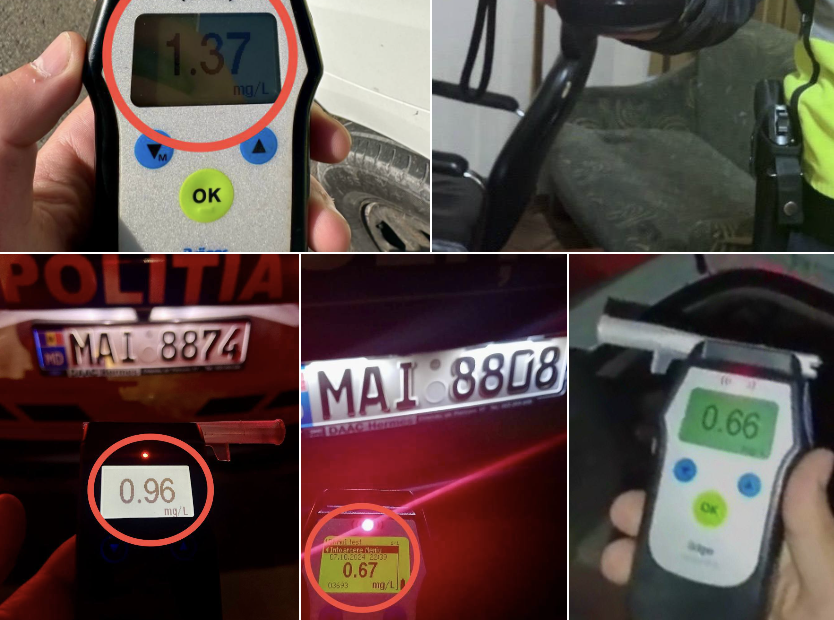 În ultimele 24 de ore, 14 șoferi au fost depistați conducând sub influența alcoolului, punând astfel în pericol siguranța traficului. Printre cazurile înregistrate se numără mai multe situații grave. La Sărata Nouă, raionul Fălești, un bărbat de 35 de ani a fost surprins la ghidonul unui motocultor cu o concentrație de alcool de 1,37 mg/l în aerul expirat, un nivel extrem de periculos. De asemenea, la Cahul, noaptea trecută, un bărbat de 37 de ani, aflat la volanul unui Renault, a fost prins conducând în stare de ebrietate avansată, având o alcoolemie de 0,96 mg/l.