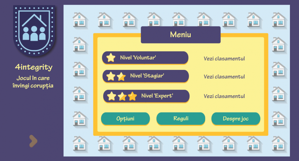 „4integrity” are trei nivele – în funcție de complexitatea întrebărilor care sunt propuse jucătorilor – voluntar, stagiar, expert.