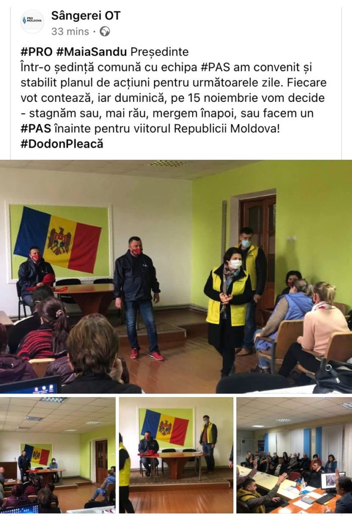 Candu a publicat și câteva imagini de la întâlnirea staff-urilor cu electoratul din raionul Sângerei, dar și o fotografie de la o pretinsă ședință la care s-ar fi votat această contopire electorală.