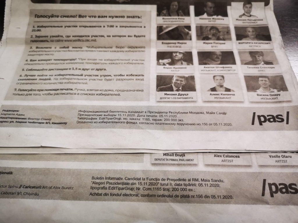 Din ce este trecut pe ziarele candidatei PAS, comanda 1165 corespunde ediției în limba română (200 de mii de exemplare), dar și celei în limba rusă (încă 200 de mii de exemplare).