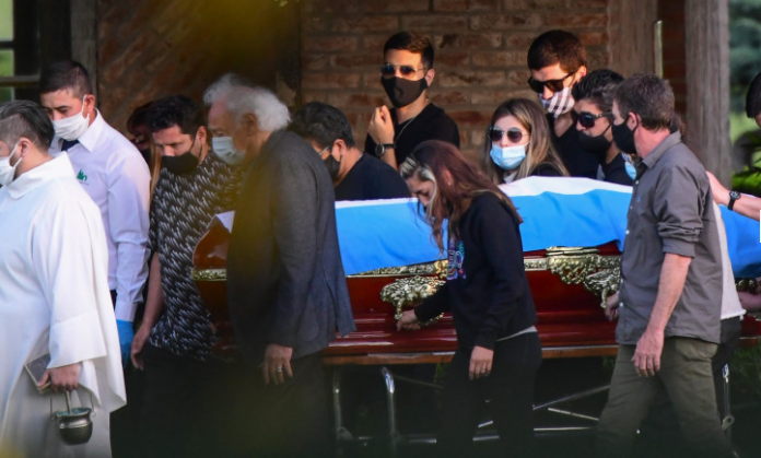 La ceremonia care a avut loc la cimitirul din capitala Argentinei au participat doar rudele şi prietenii apropiaţi ai starului argentinian.
