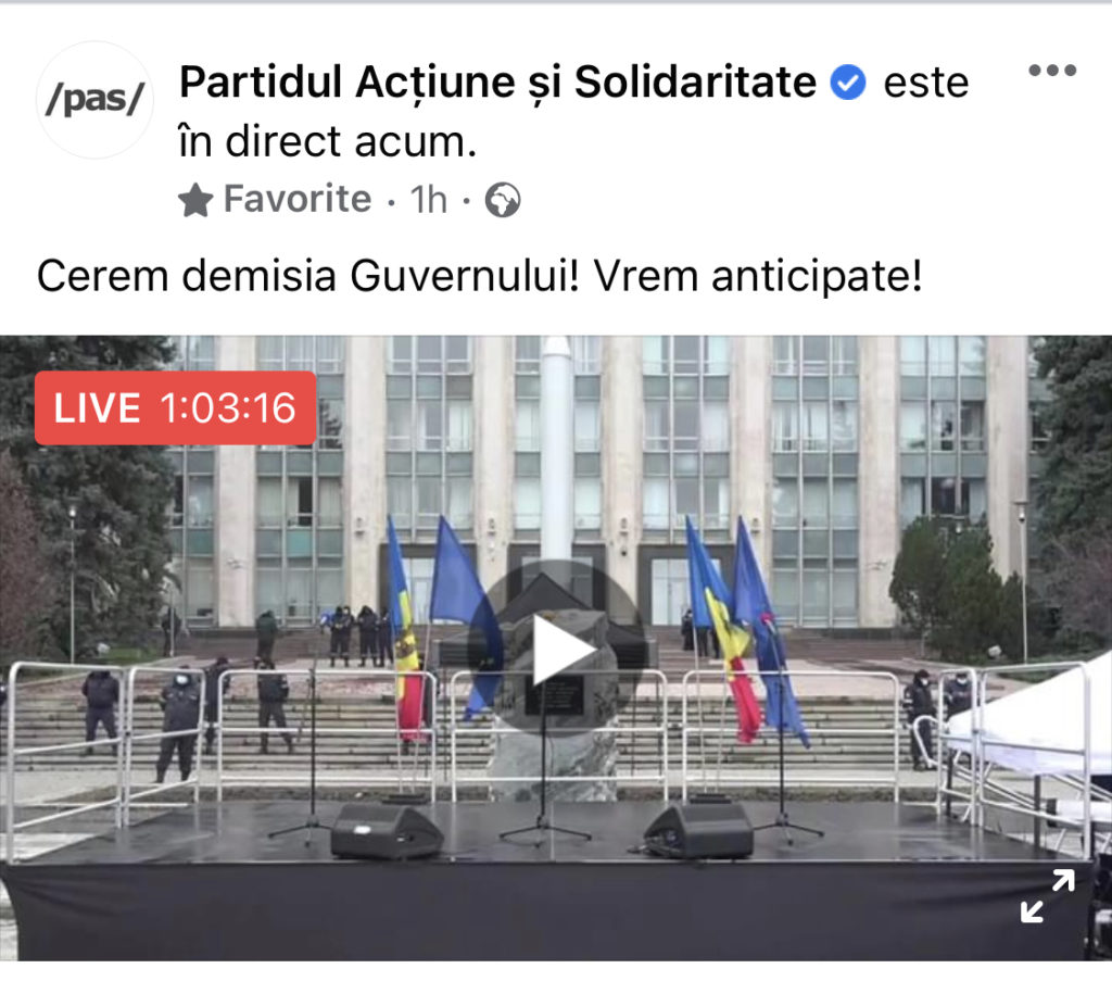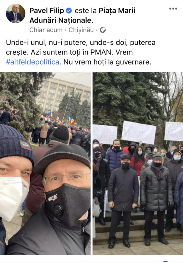 Începând cu ora 11:00, în PMAN a început protestul anunțat de Maia Sandu, dar organizat de PAS, PN, PRO Moldova și PDM.