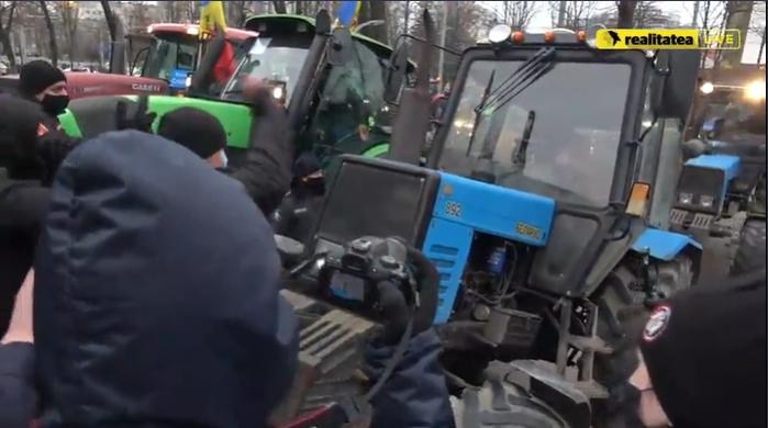 Protestul fermierilor a degenerat în îmbrânceli, iar câteva tractoare chiar au urcat pe scările Parlamentului, transmite Telegraph.md