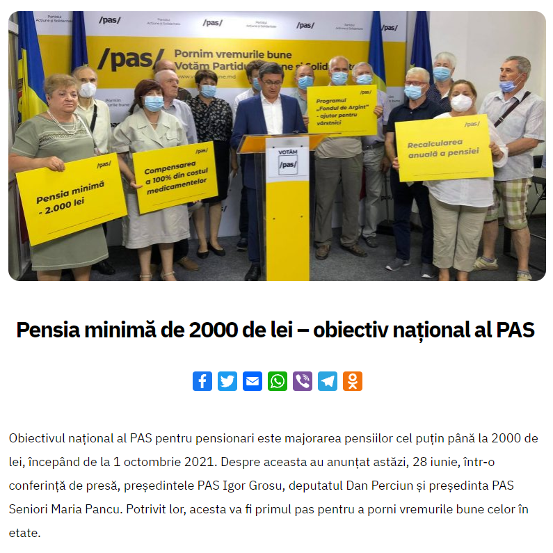 Unii pensionari care au pensia pentru limita de vârstă mai mică de două mii de lei, nu și-au primit majorările promise de actuala guvernare. Bătrânii ne-au povestit că suma s-a mărit doar cu 40 sau 80 de lei, ceea ce înseamnă că pensiile lor au fost doar indexate, în timp ce ei se așteptau să ridice cu aproximativ 400 de lei mai mult. Cel puțin, așa li se promitea bătrânilor, care nu au stagiul complet de cotizare. În replică, Natalia Gavrilița a declarat că nu sunt înregistrate astfel de cazuri și că toți și-au primit majorarea promisă, scrie tv8.md