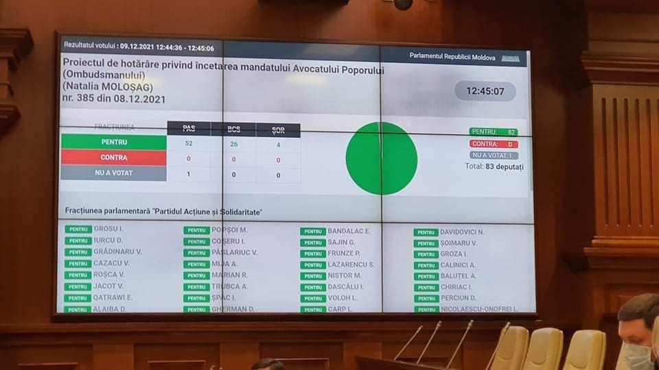 Proiectul de hotărâre mai prevede că funcția de Avocat al Poporului rămâne vacantă. Totodată, până la numirea de către Parlament a altei persoane în funcția dată, interimatul va fi preluat de Maia Bănărescu, Avocat al Poporului pentru Drepturile Copilului.