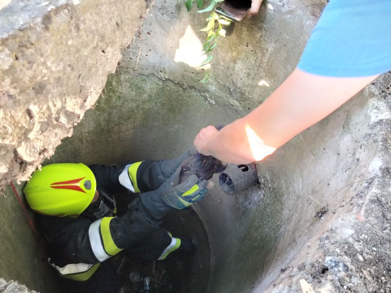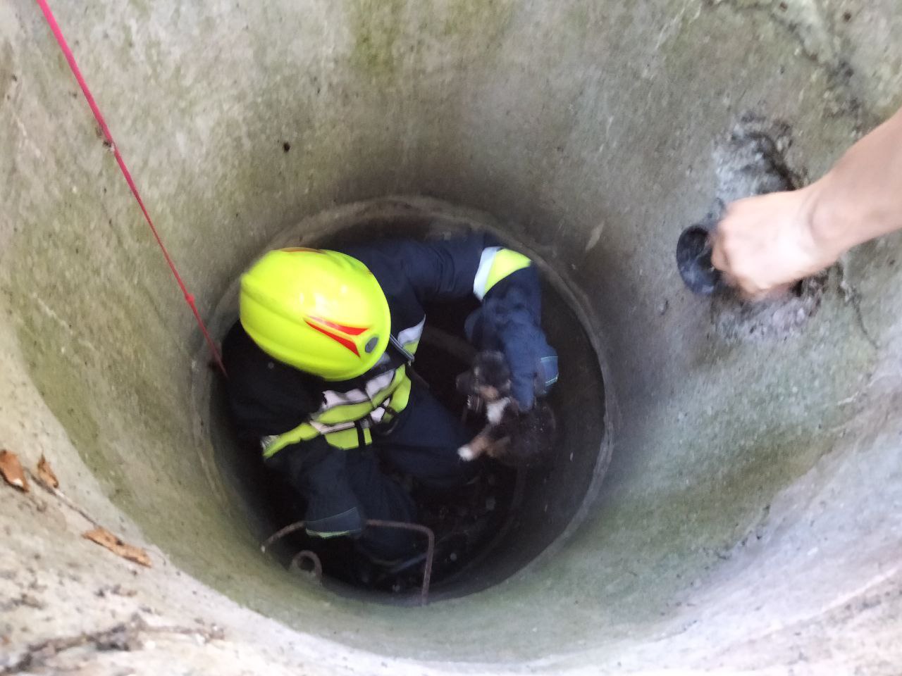 În ajutorul cățelului a intervenit un echipaj de salvatori, care în timp de 7 minute au scos capacul fântânii și s-au coborât la adâncimea de 2.5 m pentru a scoate câinele. Micul animal a fost scos nevătămat, iar copiii, care se jucau în preajma s-au bucurat de intervenția neobișnuită de succes a salvatorilor.