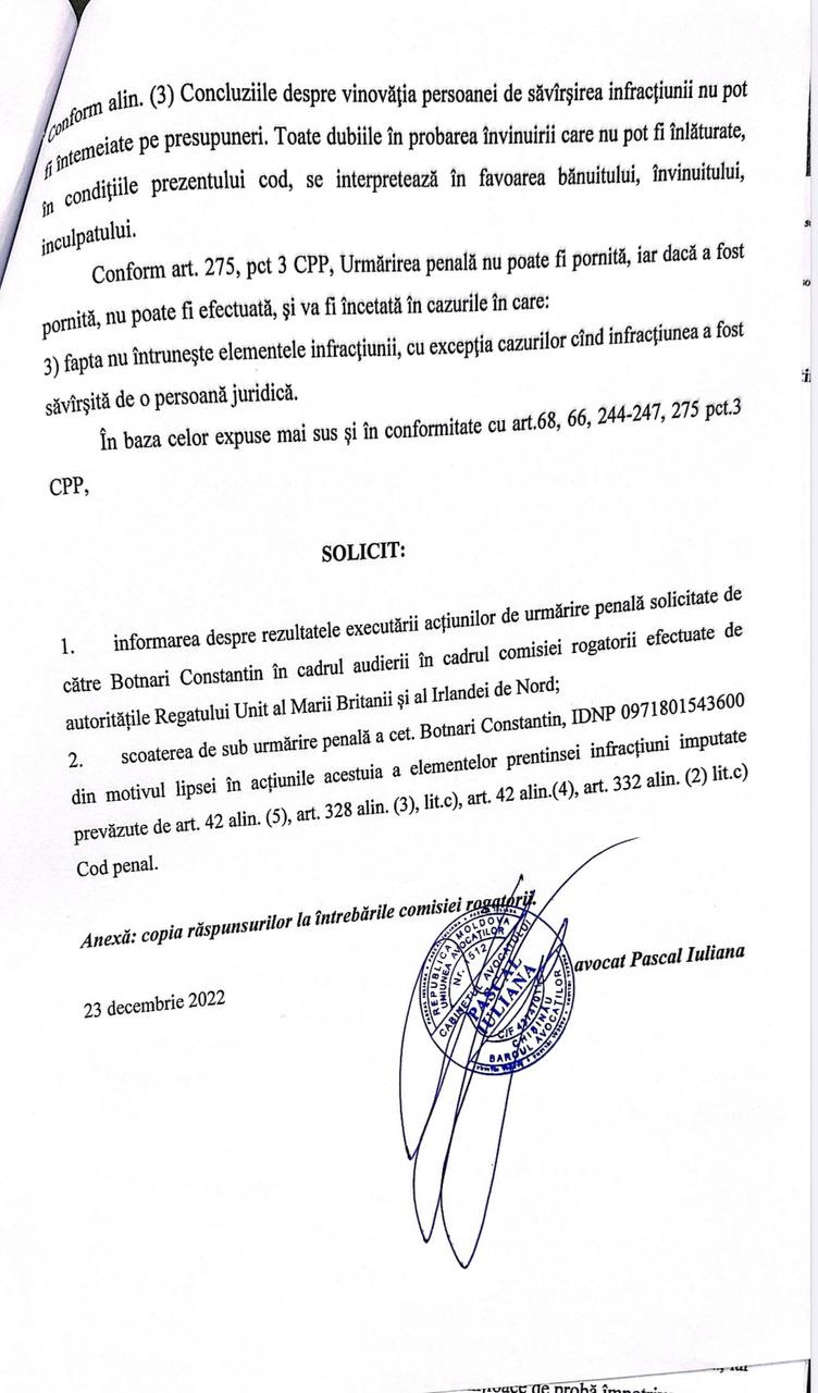 - Astăzi avocata mea doamna Iuliana Pascal, a depus o cerere de scoatere a mea de sub urmărire penală și clasarea cauzei penale fabricate împotriva mea.