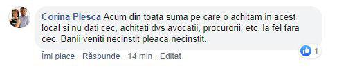 Una din clientele de la Andy’s și La Plăcinte, spune că din toată suma pe care a achitat-o ea și nu a primit cec, să achite familia Tranga avocații și cheltuielile pentru judecată, la fel fără ce, menționând că banii necinstiți pleacă la fel, necinstit.