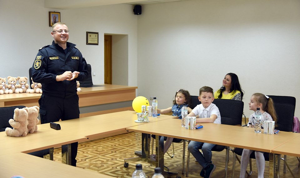 Iar pentru că ”a fost cuminte” pe parcursul sesiunii de informare, copilașii i-au dăruit lui Gheorghe Cavcaliuc și desene reprezentative instituției, unde erau desenați polițiști.