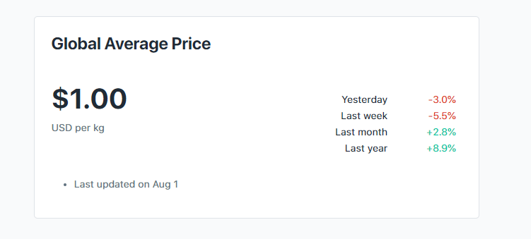Prețul mediu la roșii în data de i august în lume este de 1$.