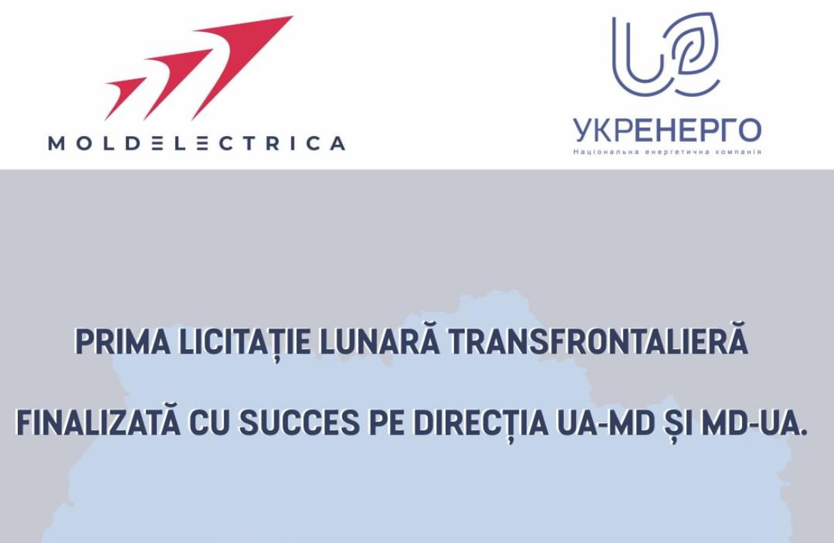 Moldelectrica, Republica Moldova, și NPC Ukrenergo, România, au încheiat cu succes prima licitație lunară comună privind alocarea capacității de transfer a energiei electrice lunare între cele două direcții MD-UA și UA-MD desfășurată pe platforma „Ukrenergo”.