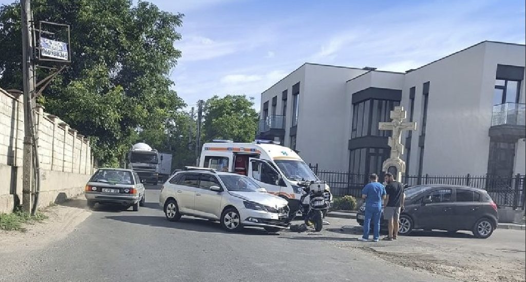 Accident în capitală: Un automobil și o motocicletă s-au ciocnit violent la Telecentru