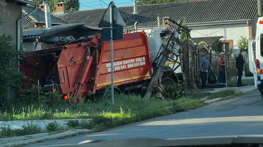 Accident matinal: O autospecială s-a izbit violent de un stâlp după ce s-a tamponat cu un Volkswagen