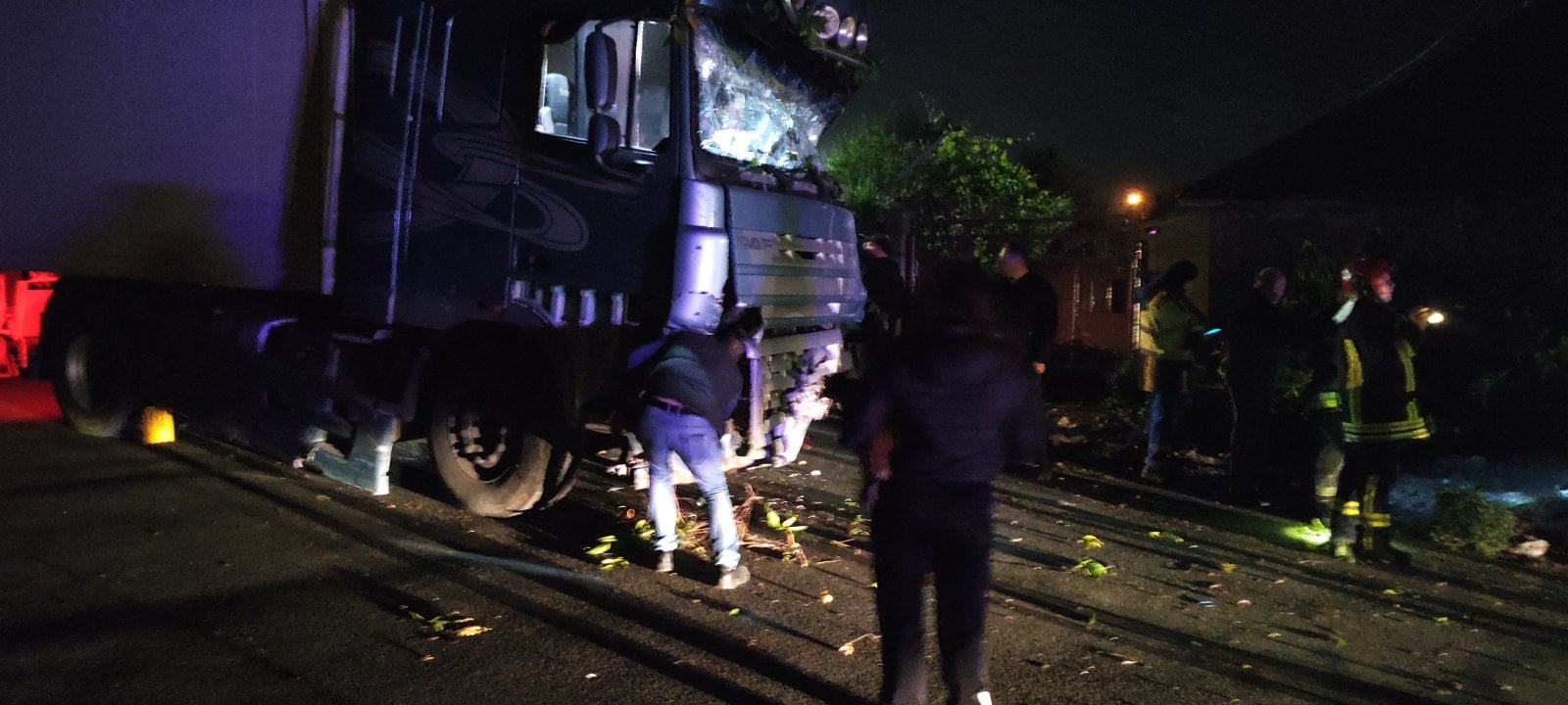 Apelul la Serviciul 112 a fost recepționat la ora 00:10. Conform informațiilor înregistrate un autocamion s-a tamponat într-o casă de locuit. La fața locului a intervenit un echipaj de salvatori, care ajungând au stabilit că un autocamion de mare tonaj de model DAF s-a tamponat în peretele unei case de locuit, un copac și doi piloni electrice.
