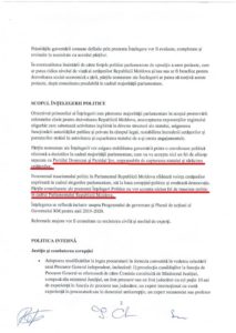 2) În continuare, la pagina 2 a Acordului, este menţionat că „Părţile constituente ale prezentei Înţelegeri Politice nu vor accepta niciun fel de traseism politic în cadrul Parlamentului Republicii Moldova”. Asta deşi, potrivit art. 5, al. (1) din Constituţie, „democraţia în Republica Moldova se exercită în condiţiile pluralismului politic, care este incompatibil cu dictatura şi cu totalitarismul”, iar conform art. 68 mandatul imperativ al deputatului este nul. Cu alte cuvinte, nimeni şi niciodată nu poate să-i interzică unui deputat să se disocieze de o anumită formaţiune politică, să-şi dea demisia dintr-o fracţiune parlamentară şi/sau să adere la alta. Or, prin aceste „angajamente”, Alianţa ACUM-PSRM încalcă dreptul constituţional al deputaţilor de a adera sau de a demisiona din partide şi fracţiuni parlamentare.
