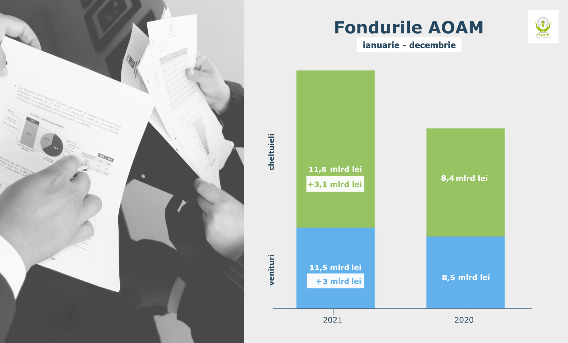 Totodată, cheltuielile din fondurile AOAM au fost în anul trecut de peste 11 miliarde 552 milioane de lei, în creştere cu aproape 3 miliarde 147 milioane de lei faţă de 2020. Cea mai mare parte, mai mult de 11 miliarde 436 de milioane au fost transferaţi prestatorilor de servicii medicale şi farmaceutice contractaţi. Suma virată în anul 2021 pentru serviciile medicale prestate este cu cca 3,2 miliarde de lei mai mare faţă de aceeaşi perioadă a anului 2020.