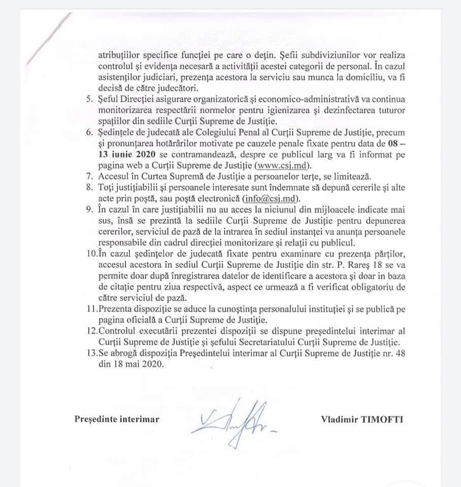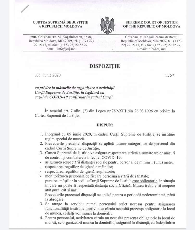 În legătură cu acest fapt, începând cu 09.06.2020, Curtea Supremă de Justiție va activa în regim special de muncă, anunță repezentanții instituției într-o dispoziție.