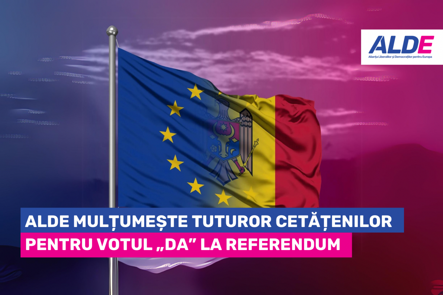 Alianța Liberalilor și Democraților pentru Europa (ALDE) mulțumește tuturor cetățenilor care au votat DA la Referendumul din 20 octombrie.