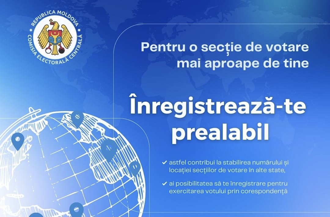 Comisia Electorală Centrală (CEC) reamintește alegătorilor moldoveni aflați în afara țării că mai au la dispoziție doar 2 zile pentru a se înregistra prealabil în vederea participării la referendumul republican constituțional și alegerile prezidențiale care vor avea loc pe 20 octombrie 2024.