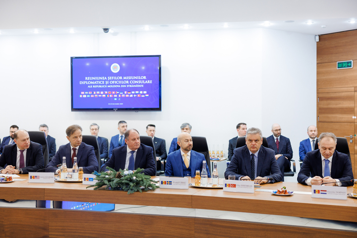 Ambasadorii Republica Moldova au fost convocați la final de an la reuniunea anuală de lucru, la sediul MAE, în cadrul căreia Maia Sandu a prezentat direcțiile principale ale politicii externe pentru anul 2026.