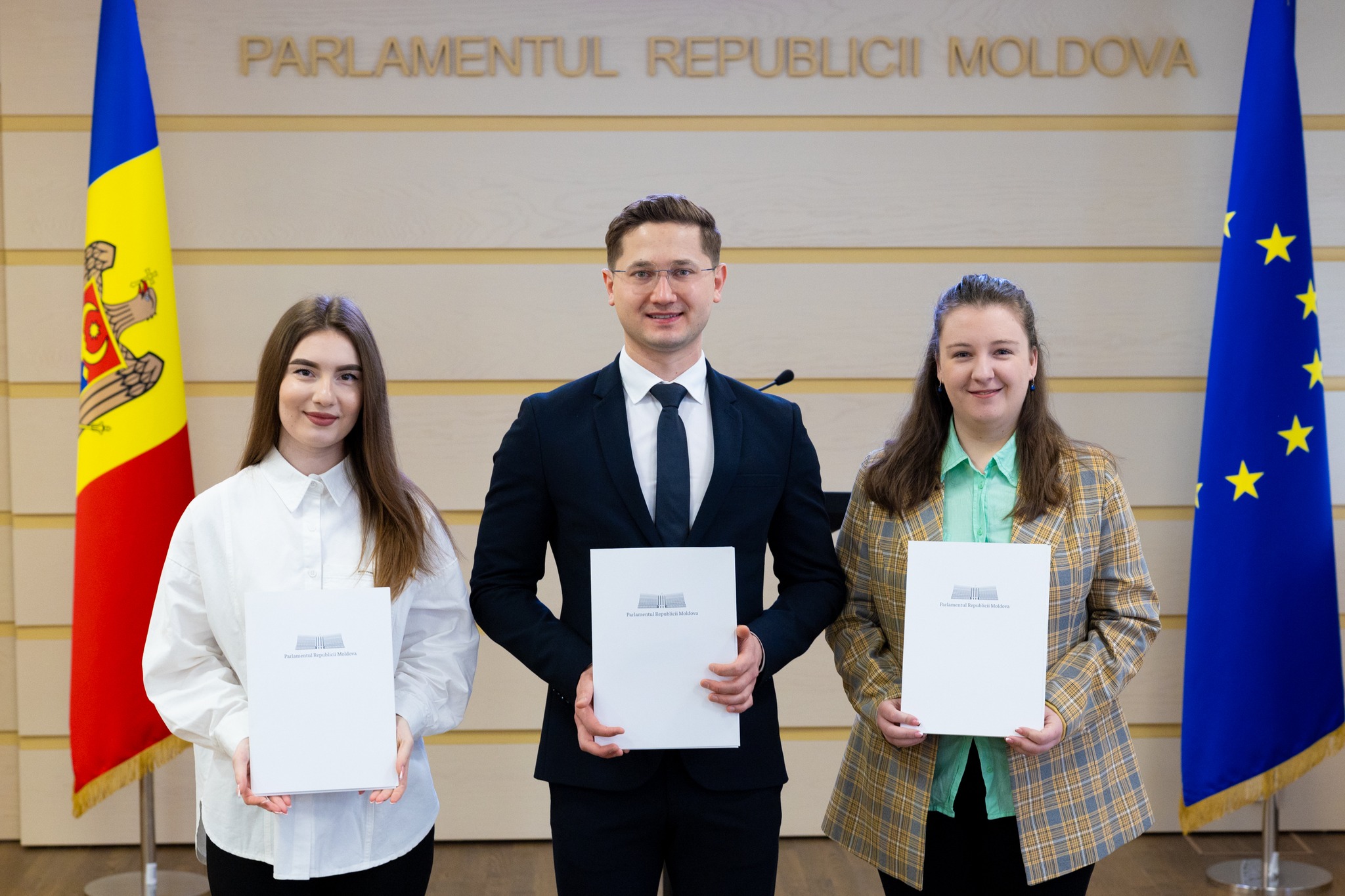 Trei tineri – Arina Costin, Vasile Pleșca și Adriana-Maria Ispas – și-au încheiat cu succes stagiile în cadrul Secretariatului Parlamentului Republicii Moldova, fiind beneficiari ai programului de stagii plătite în serviciul public.