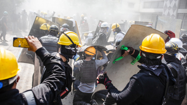 Armata din Myanmar a tras împotriva protestatarilor cu arme de asalt, lansatoare de grenade și grenade de mână, mai spune AAPP.