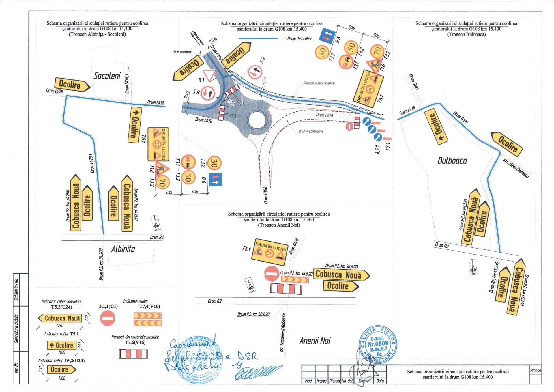 Pentru a facilita tranzitul local în timpul lucrărilor, în zona sensului giratoriu a fost amenajat un drum de ocolire provizoriu, care face legătura între drumul G108 (direcția Cobusca Nouă) și drumul L478 (spre Bulboaca).