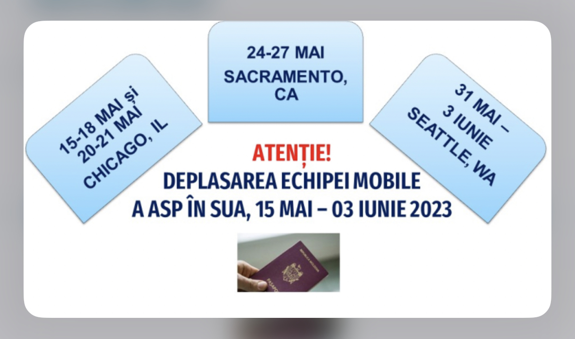 Echipa mobilă de colaboratori ai Agenției Servicii Publice va fi disponibilă pentru cetățeni în trei locații diferite din Statele Unite. Aceștia vor oferi servicii de reînnoire a buletinelor de identitate și a pașapoartelor biometrice, precum și de obținere a actelor de stare civilă. Este important de menționat că programarea prealabilă online este obligatorie pentru a beneficia de aceste servicii.