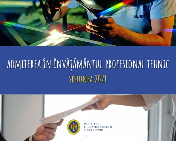 Ministerul Educației, Culturii și Cercetării a demarat concursul de admitere în învățământul profesional tehnic, organizat conform prevederilor Regulamentului de organizare și desfășurare a admiterii la programele de formare profesională tehnică, aprobat prin Ordinul MECC nr. 459/2020.