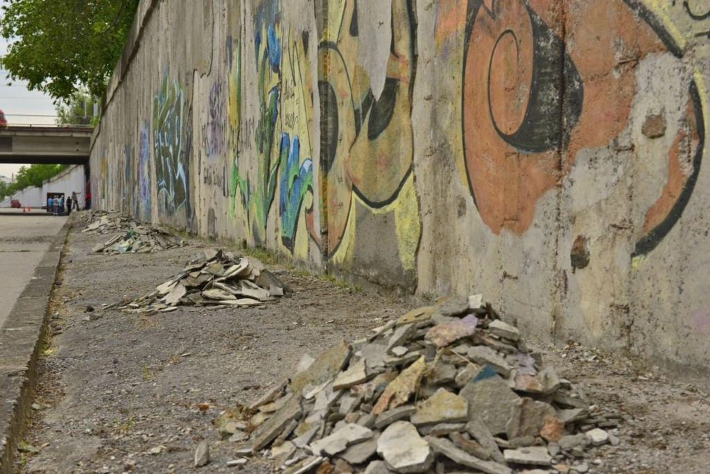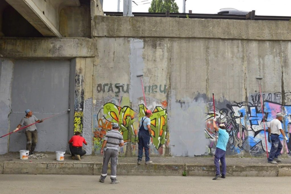 În prezent, sunt efectuate lucrări de demolare a tencuielii de pe pereți şi aplicare a stratului de grund, ce va servi ca suport pentru aplicarea vopselei. Tot acolo au fost deja instalate schele, iar în următoarele zile va începe realizarea picturii murale.