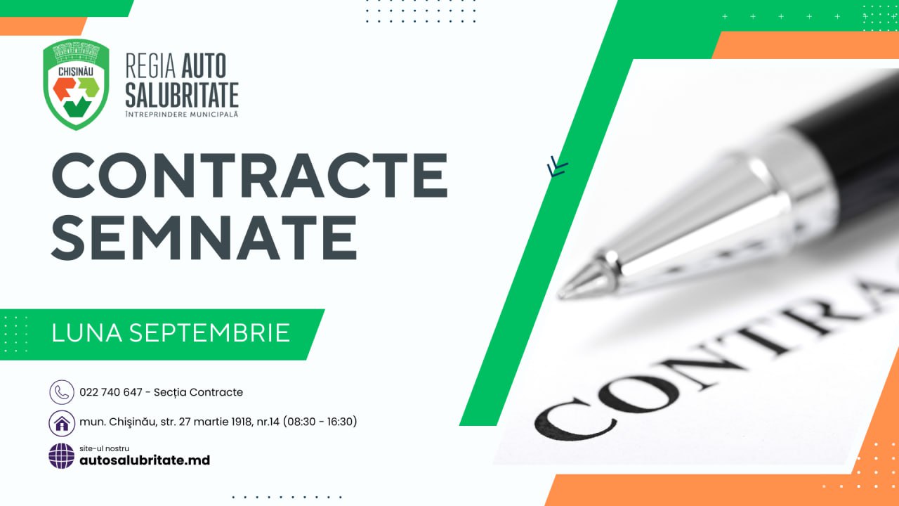 Î.M. Regia „Autosalubritate” anunță că, în luna septembrie, au fost semnate peste 100 de contracte noi privind evacuarea deșeurilor municipale.
