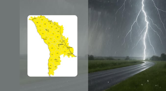 Serviciul Hidrometeorologic de Stat a emis luni, 19 mai, o avertizare de cod galben privind instabilitate atmosferică accentuată, valabilă în intervalul 12:30–22:00.
