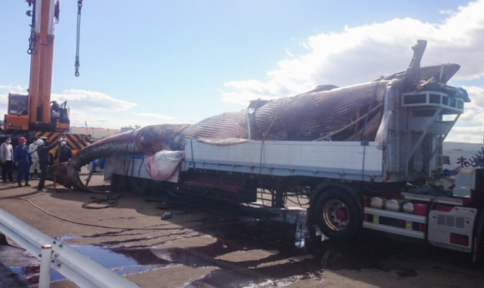 Angajații au solicitat ajutorul portului pentru a scoate balena. Ei cred că au agățat balena cu botul navei în timpul cursei și că era deja moartă. Balena a fost ridicată cu o macara și transportată cu un camion la o universitate din Tokyo pentru cercetare.