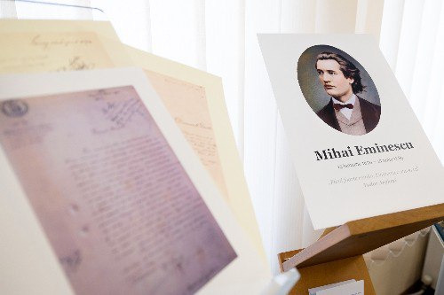 Expoziția cu genericul „Fiind foarte român, Eminescu e universal” este găzduită de Biblioteca Parlamentului și este organizată în colaborare cu Biblioteca „Onisifor Ghibu” din capitală. Aceasta va fi deschisă vizitatorilor Parlamentului timp de o săptămână.