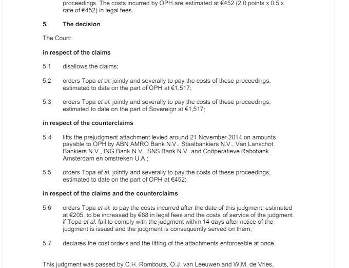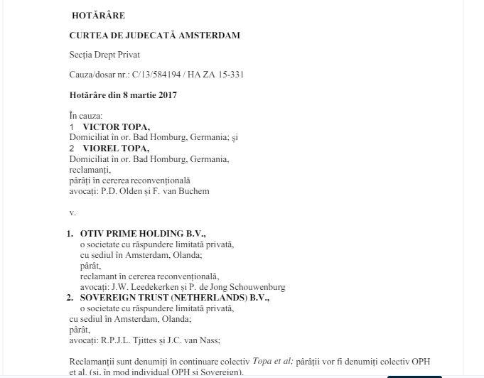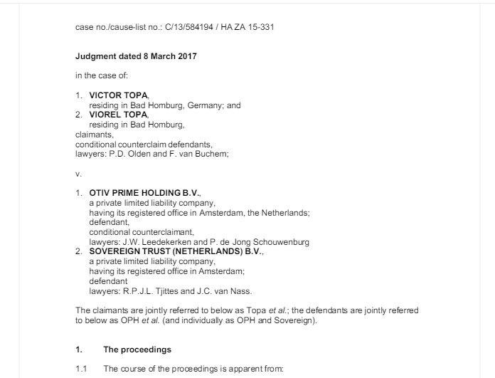 Numai că, timpul își face treaba și adevărul oricum iese la lumină (vorba lui Plahotniuc). Astfel, la 3 ani distanță de la regia lui Val Butnaru de la JTV, undeva prin martie 2017, Curtea din Amsterdam emite 2 decizii în cauza Victor și Viorel Țopa VS Otiv Prime Holding (doc aici: https://agora.md/stiri/29500/doc–plahotniuc-publica-decizia-curtii-din-amsterdam-in-cauza-victor-si-viorel-topa-vs-otiv-prime-holding, ori aici: https://ru.scribd.com/document/341969426/Judgment-OTIV-Topa-08-03-17#from_embed), prin care demonstrează că acuzațiile formulate de Țopa, în baza documentelor despre care povestește și Platon și Slusari sunt pur și simplu apă chioară și nu costă 2 bani.