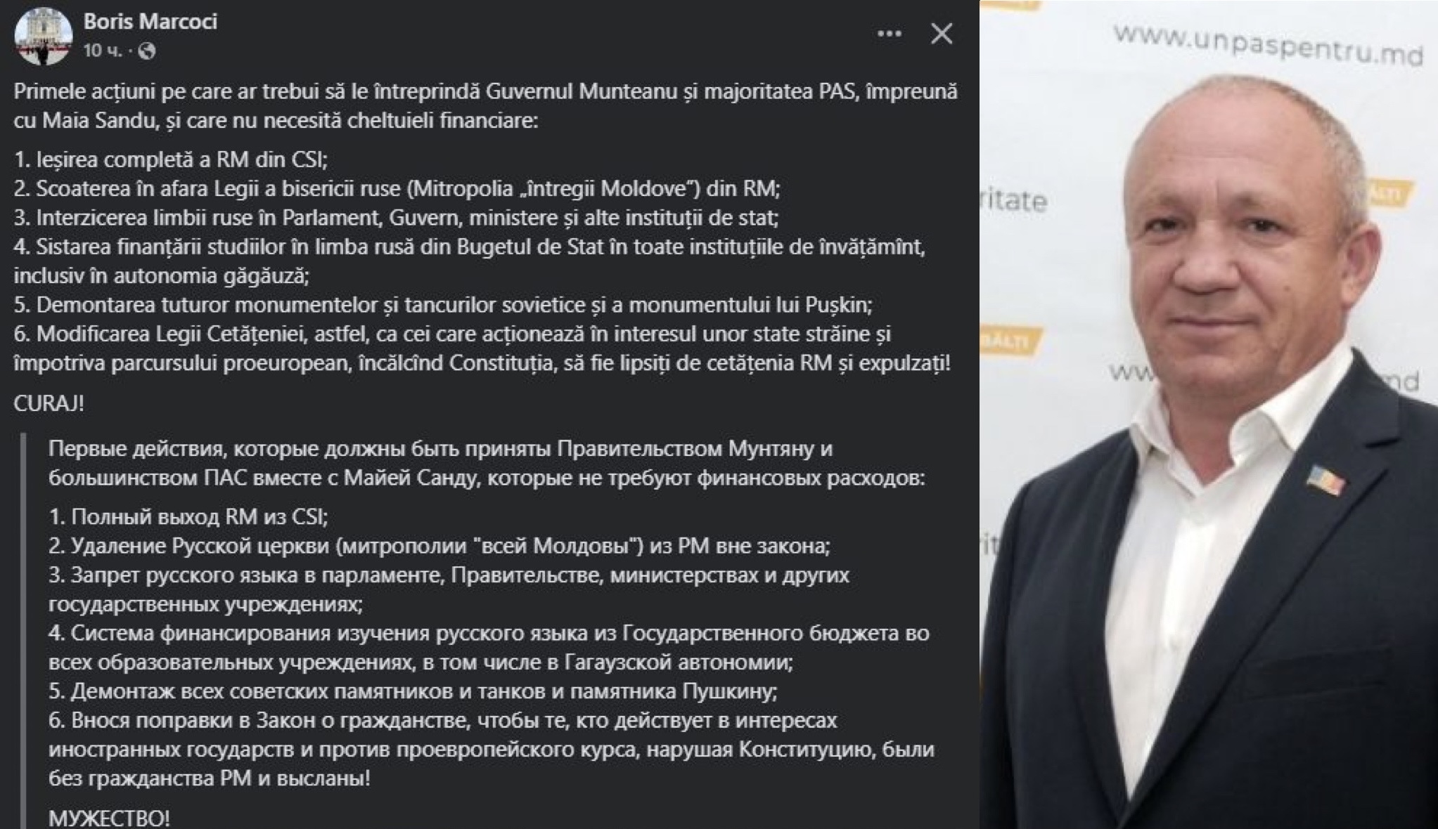 Fostul deputat PAS, Boris Marcoci, a publicat o postare în care i-a încurajat pe Maia Sandu, Guvernul Munteanu și majoritatea PAS să întreprindă o serie de acțiuni „care nu necesită cheltuieli financiare”.