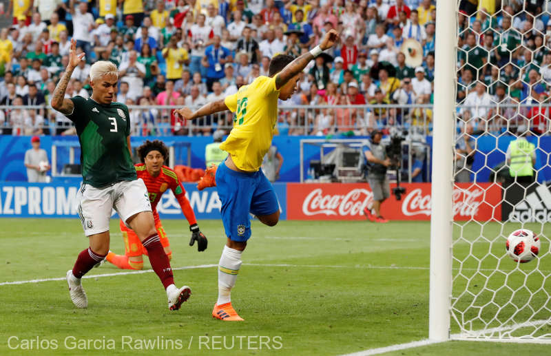 Selecţionata Braziliei s-a calificat fără emoţii în sferturile de finală ale Cupei Mondiale de fotbal din Rusia, după ce a învins reprezentativa Mexicului cu scorul de 2-0 (0-0), luni, la Samara, în optimile de finală.