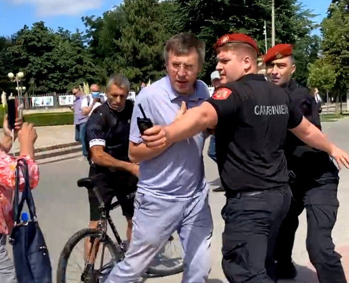 Dorin Chirtoacă, candidat la alegerile parlamentare din 11 iulie 2021 pe lista AUR, s-a aruncat astăzi în fața liderilor Comuniștilor și Socialiștilor, în timpul acțiunii ”Iubim Moldova”.