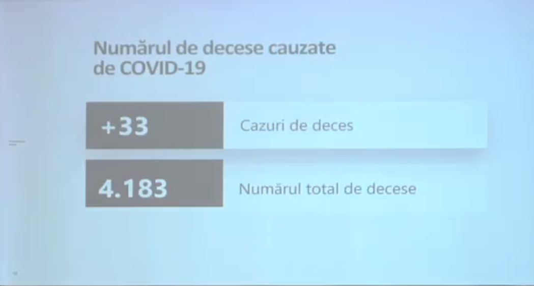 Ministerul Sănătății a comunicat despre înregistrarea altor 33 de decese provocate de COVID-19:
