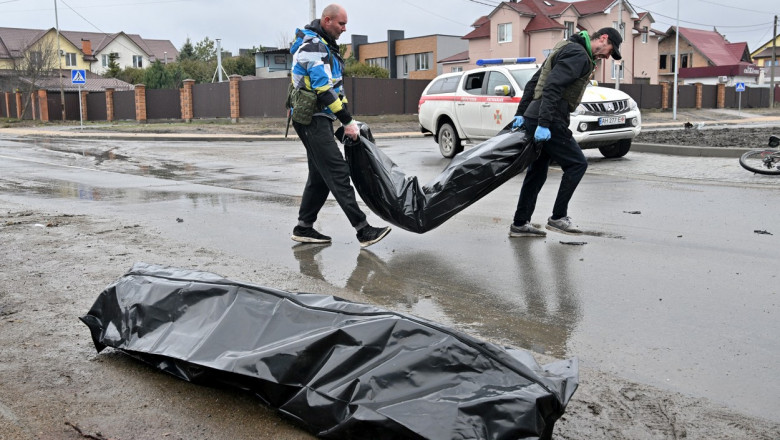 Zeci de cadavre îmbrăcate în civil au fost descoperite la sfârşitul săptămânii în oraşul Bucha, pe străzi sau în gropi comune, după retragerea forţelor ruse.