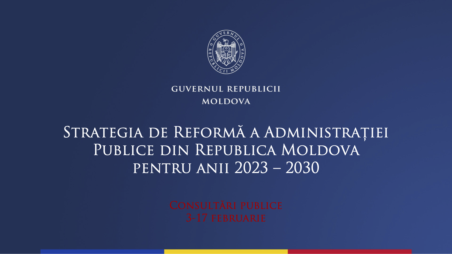 Proiectul Strategiei de reformă a administrației publice pentru anii 2023-2030 este disponibil, începând cu ziua de astăzi, pentru consultări publice. Documentul poate fi accesat pe portalul www.particip.gov.md