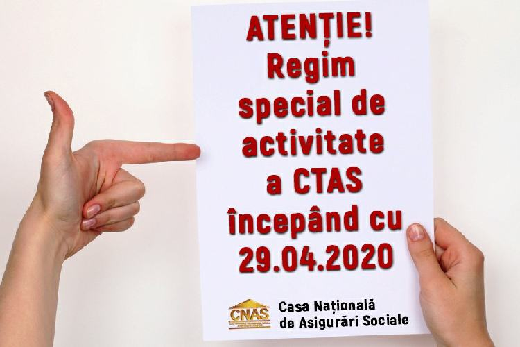 Potrivit unui comunicat emis de CNAS, redeschiderea pentru vizitatori a Front Oficiilor caselor teritoriale de asigurări sociale (CTAS) va fi efectuată pe etape și cu separarea categoriilor de beneficiari. Aceste măsuri au fost luate pentru a preveni răspândirea pandemiei de coronavirus.