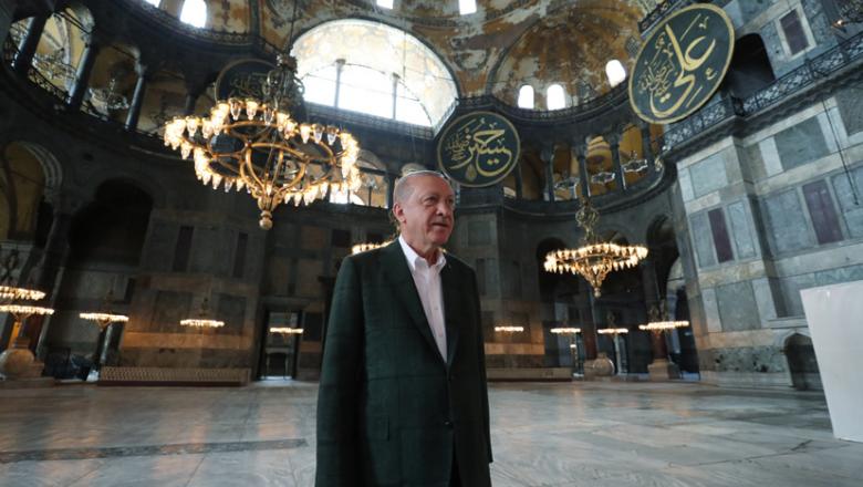De altfel, Recep Erdogan a sosit la Istanbul și a inspectat catedrala înaintea redeschiderii acesteia ca moschee. Liderul de la Ankara a inagurat și noua plăcuță a catedralei pe care stă scris „marea moschee Hagia Sofia”. Unele mozaicuri din bazilica Sfânta Sofia din Istanbul, reprezentând figuri creştine, vor fi acoperite cu draperii în timpul rugăciunilor musulmane, a anunţat purtătorul de cuvânt al preşedintelui turc