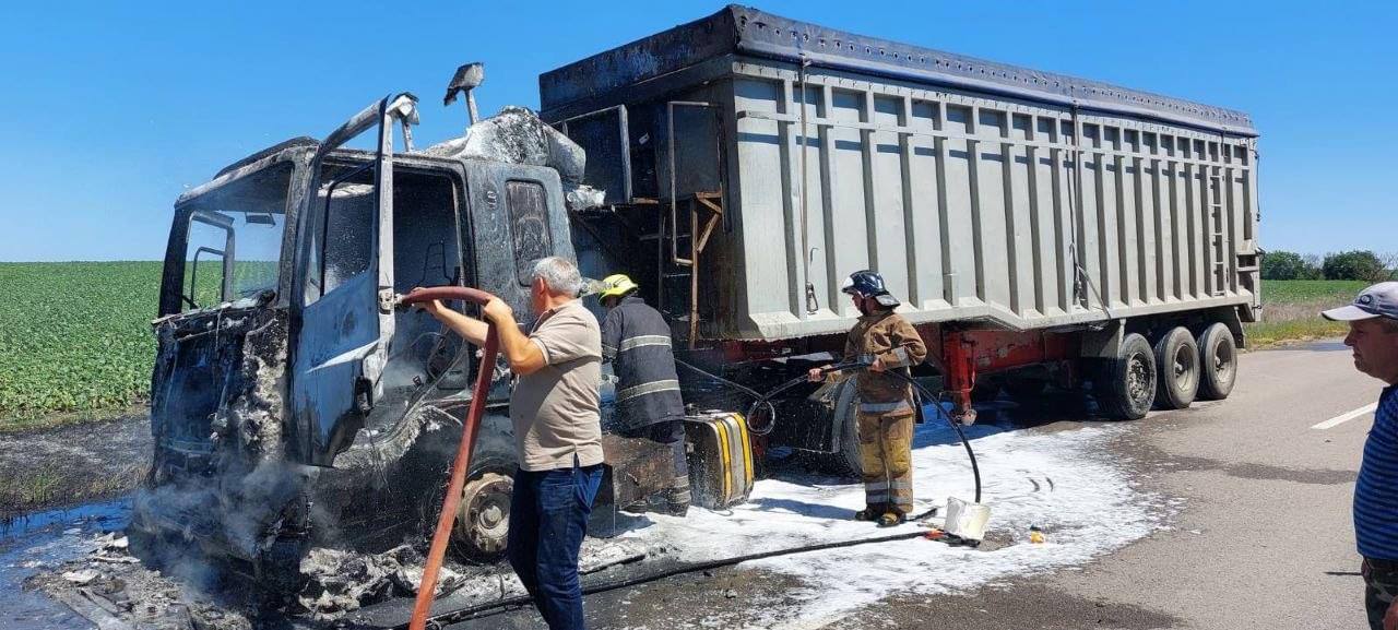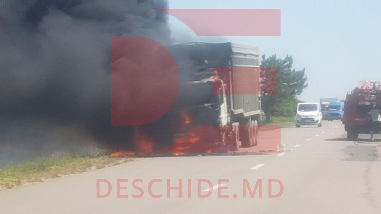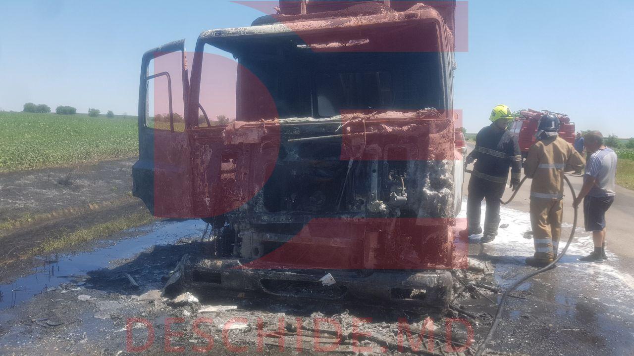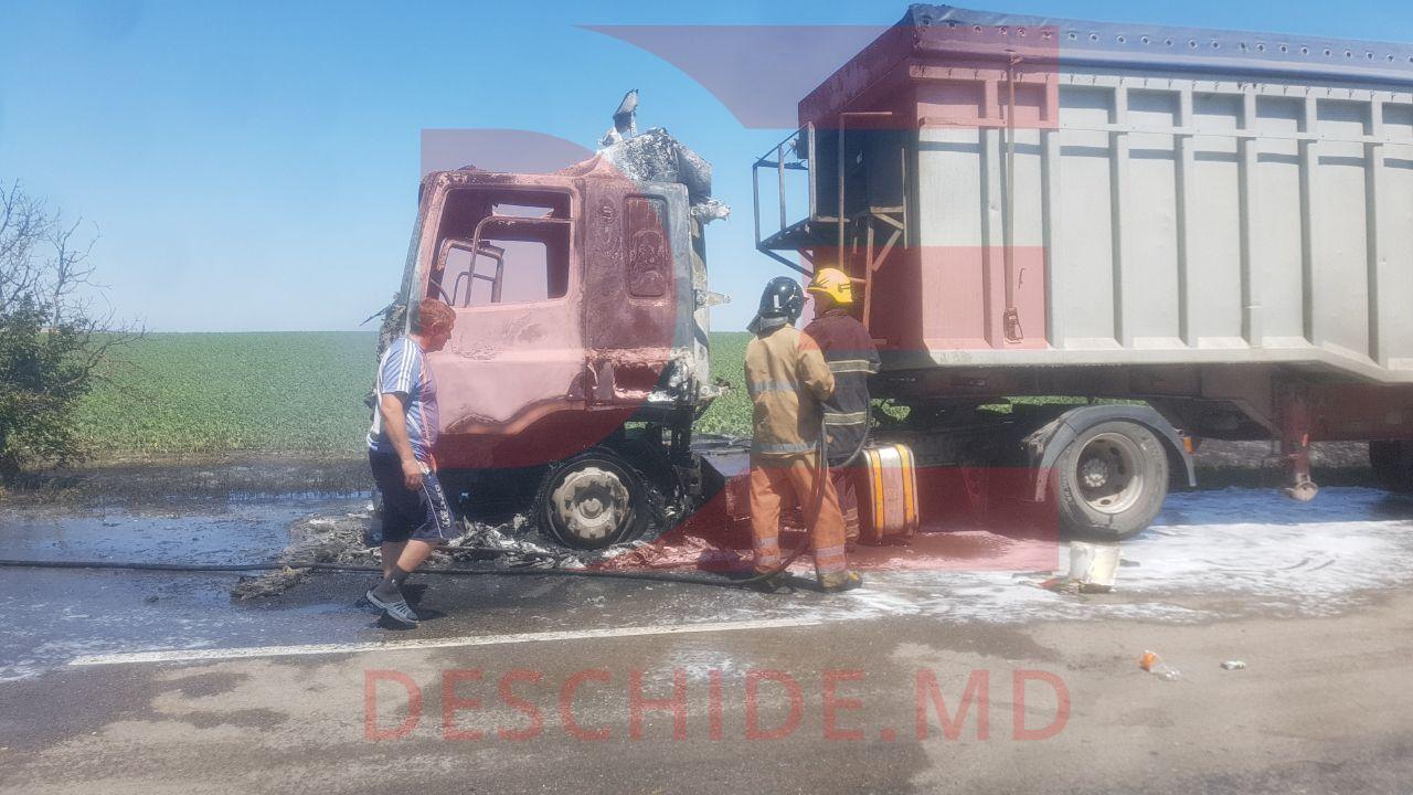 Un camion care transporta cereale a luat foc. Cazul a avut loc astăzi în apropierea de localitatea Taraclia din raionul Căușeni, informează Deschide.md