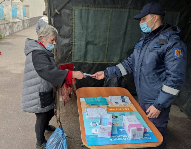 De asemenea punctele de informare a populației au activat și în sectoarele municipiului Chișinău. Pe parcursul a două zile salvatorii au distribuit 4550 pliante informative și au înmânat cetățenilor 1420 măști de protecție. Totodată, activități similare au fost întreprinse în toate regiunile Republicii Moldova. Angajații Inspectoratului au ajuns în 45 de localități din 31 raioane ale țării cu autospecialele din cadrul instituției și au difuzat mesaje audio cu regulile de protecție.