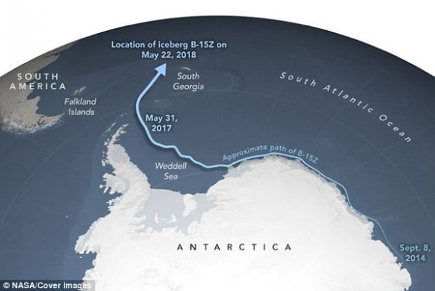Ghetarul se apropie de regiunile foarte calde de la ecuator. In martie 2000, cand s-a desprins din calota de gheata Ross din Antarctica, ghetarul B-15 avea aproximativ 11.000 km patrati si era considerat cel mai mare din lume. De atunci, uriasa bucata de gheata pluteste pe apele oceanelor, parcurgand in total o distanta de peste 10.000 kilometri.
