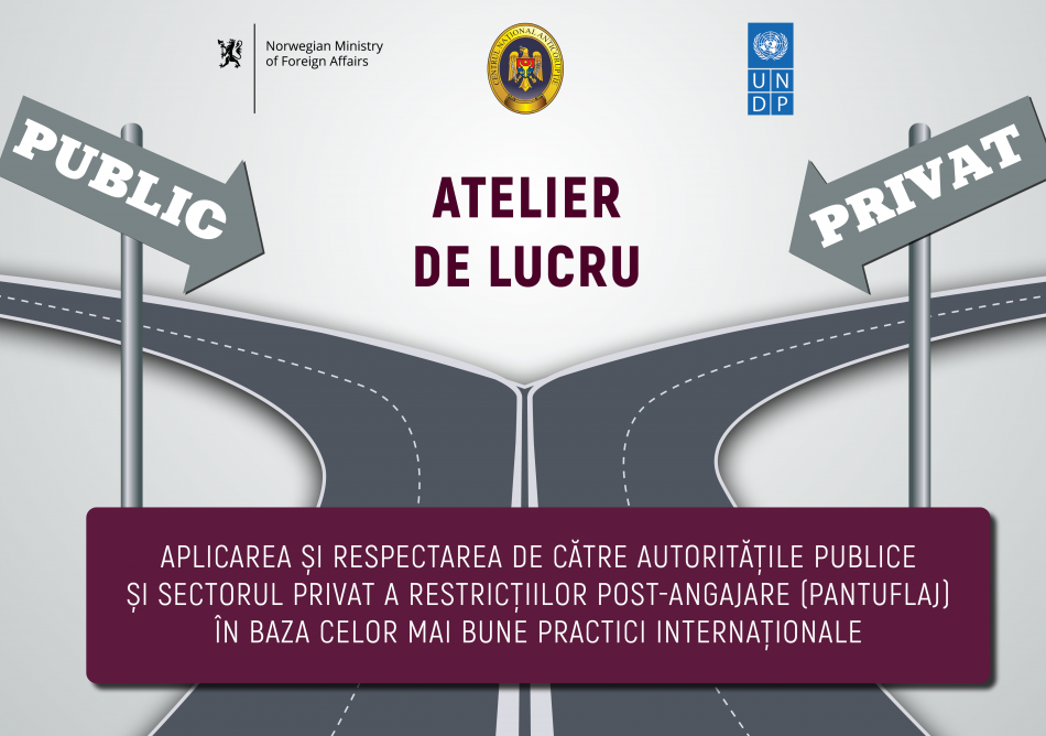 Angajați ai CNA, precum și alți 50 de reprezentanți ai autorităților publice și companiilor private au participat, în perioada 10-12 noiembrie, la trei ateliere despre aplicarea și respectarea de către autoritățile publice și sectorul privat a restricțiilor post-angajare (pantuflaj) în baza celor mai bune practici internaționale. Evenimentele au fost organizate în cadrul proiectului „Lupta cu corupția prin consolidarea integrității în Republica Moldova”, implementat de PNUD Moldova în parteneriat cu Centrul Național Anticorupție, cu suportul Ministerului Afacerilor Externe al Norvegiei.