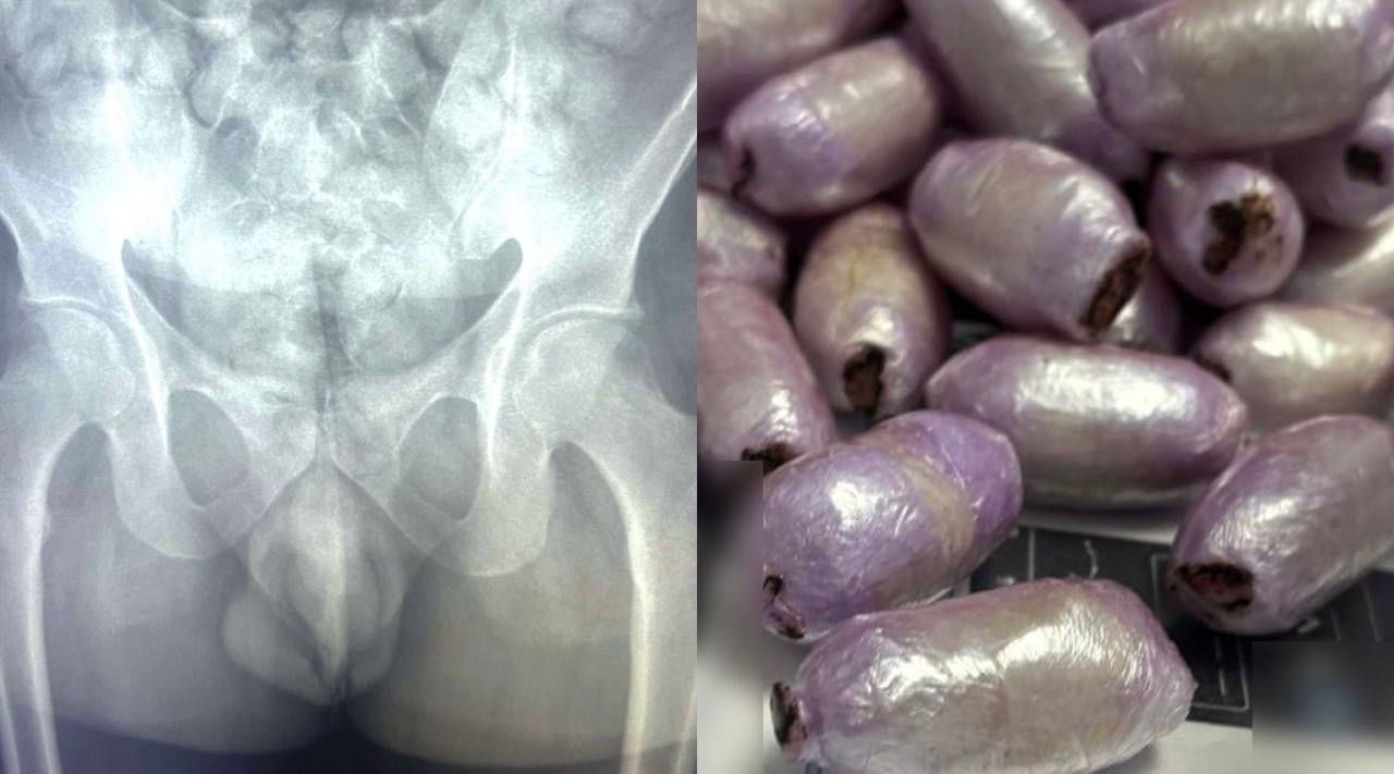 În urma controlului efectuat cu ajutorul unui scaner corporal cu raze X aflat în dotarea Poliției de Frontieră, în interiorul abdomenului inculpatului au fost observate mai multe formațiuni neobișnuite, care nu corespund anatomiei umane. În consecință, inculpatul a fost condus la o unitate spitalicească, unde, pe parcursul internării, a eliminat un număr de 62 de cașete, ce conțineau aproximativ 350 de grame de substanță pulverulentă (în prezent aflată în curs de expertizare).