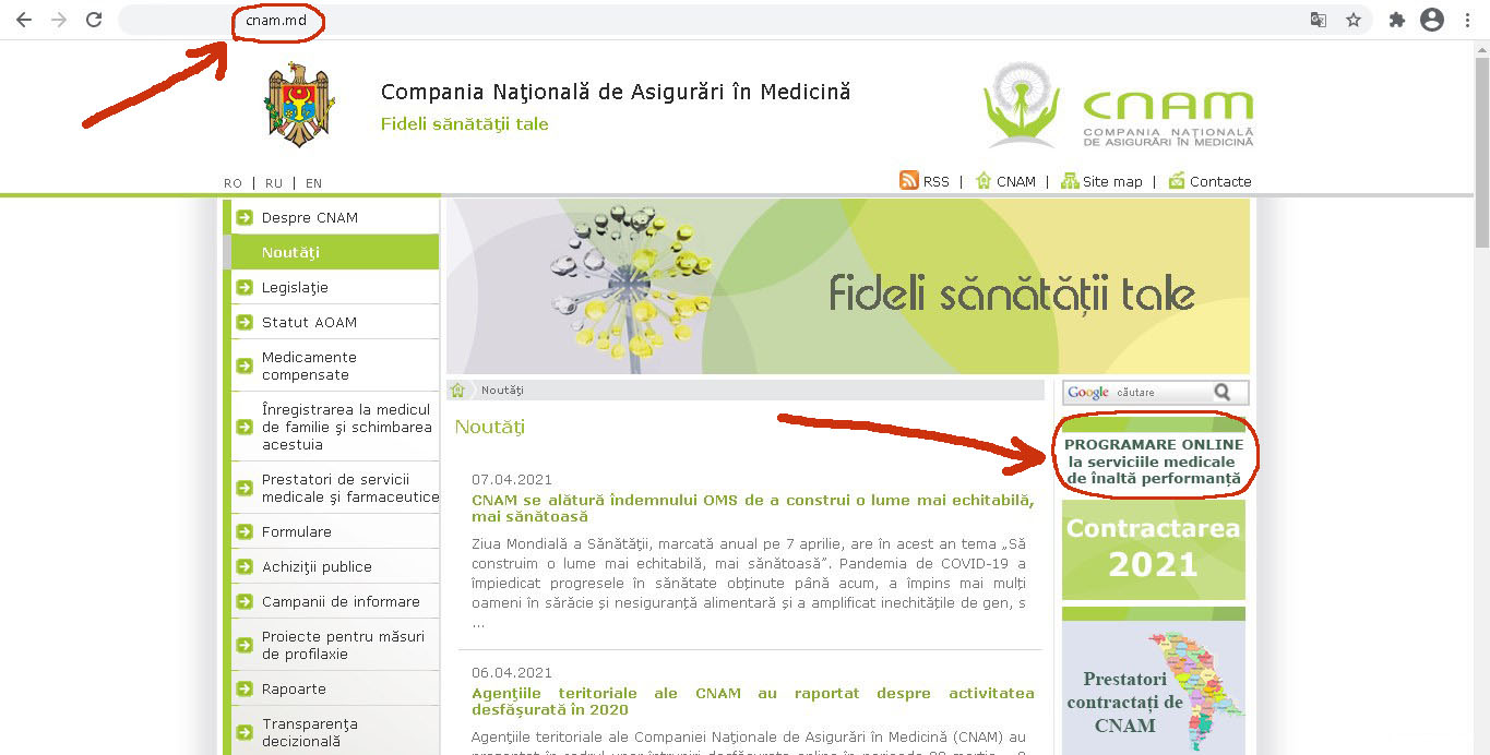 Acești pași pot fi vizualizați și la accesarea bannerului Programare online la serviciile medicale de înaltă performanță de pe site-ul cnam.md.